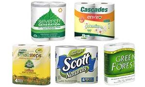 - Seventh Generation: Seventh Generation is the leading manufacturer of 100 percent recycled, chlorine-free-processed toilet paper and facial tissues. By purchasing Seventh Generation's soft, recycled, and hypoallergenic Bath Tissue, you're reducing the need for virgin wood pulp and leaving more trees standing. According to their site, if every US household replaced one 12-pack of 300-sheet virgin fiber bathroom tissue with Seventh Generation's recycled toilet paper, we would be saving nearly 2 million trees, 690 million gallons of water, and 4.8 million cubic feet of landfill space. Find Seventh Generation products on their webpage, online