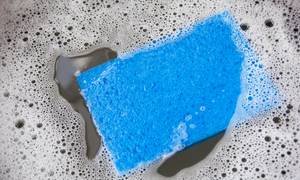 First of all, you'll want to make sure that mangled and weird-looking sponge is clean before you use it again. Just pop it in the microwave for 30 seconds; run it in the dishwasher; or put it in your washing machine along with kitchen rags and towels.