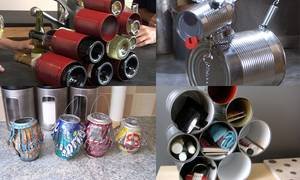 - Cubby Storage: If you have a wealth of aluminum cans sitting around the house, grab a few extras, a tube of liquid nails, and a few small clamps and make yourself a quick cubby storage unit. All you will need to do is glue together a few larger-sized aluminum cans with liquid nails, clamp them together to let the glue dry, then continue to add as many (or as few) as you like throughout the day. Aluminum can cubby storage works great for the office or the kid's room.